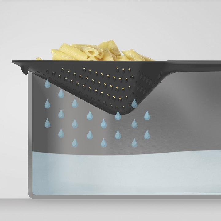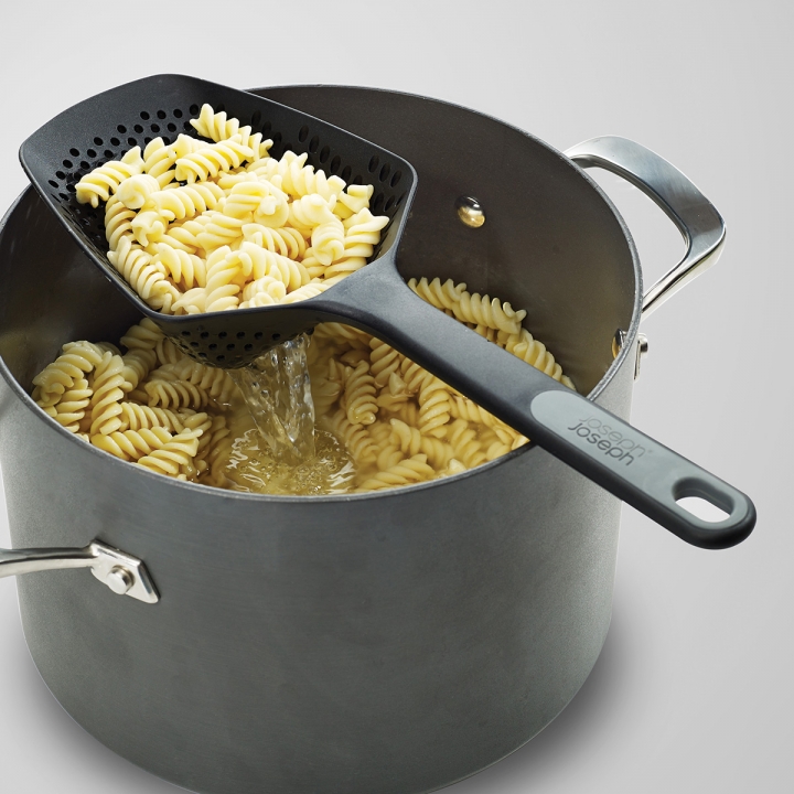 На первый взгляд, ничего необычного, кроме того, что этот инструмент родом из дизайнерской студии JosephJoseph. А это значит, что он невероятно удобен и практичен. Позволяет «выловить» гораздо больше продуктов по сравнению с обычной шумовкой. Особая конструкция способствует быстрому стеканию жидкости.