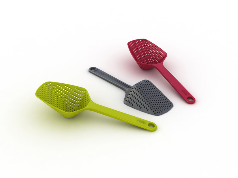 На первый взгляд, ничего необычного, кроме того, что этот инструмент родом из дизайнерской студии JosephJoseph. А это значит, что он невероятно удобен и практичен. Позволяет «выловить» гораздо больше продуктов по сравнению с обычной шумовкой. Особая конструкция способствует быстрому стеканию жидкости.