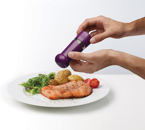 Совмещает в себе функции как размельчителя специй, так и просто солонки и перечницы. Она способна раздробить черный перец горошком, превратить морскую соль в мелкую присыпку или сделать специи из любого сырья. Просто откройте донышко, засыпьте необходимое количество и крутите крышку, как будто хотите ее открутить. Перемолотые крупинки будут сыпаться с противоположной стороны Вашей мельнички.